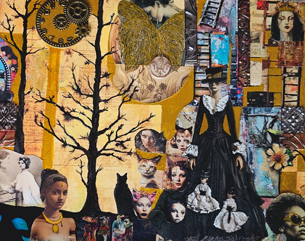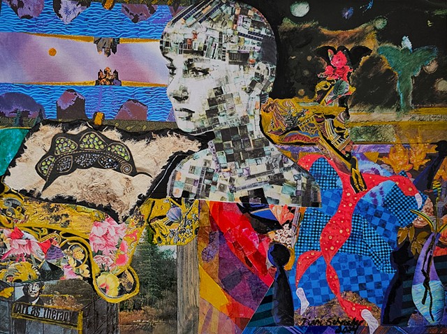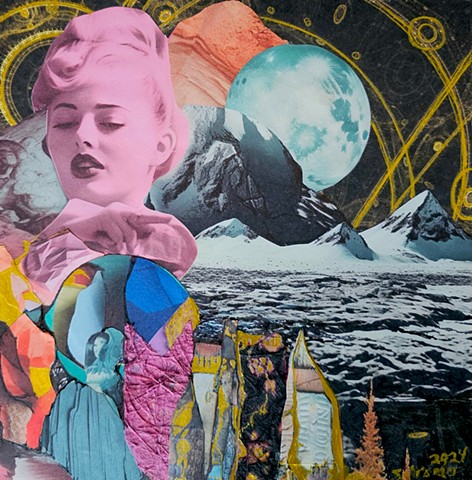Images rescued from the past are pieced together like fragments of a dream. Paper, pigment, and pattern intertwine, inviting older aesthetics to breathe within newly constructed worlds.